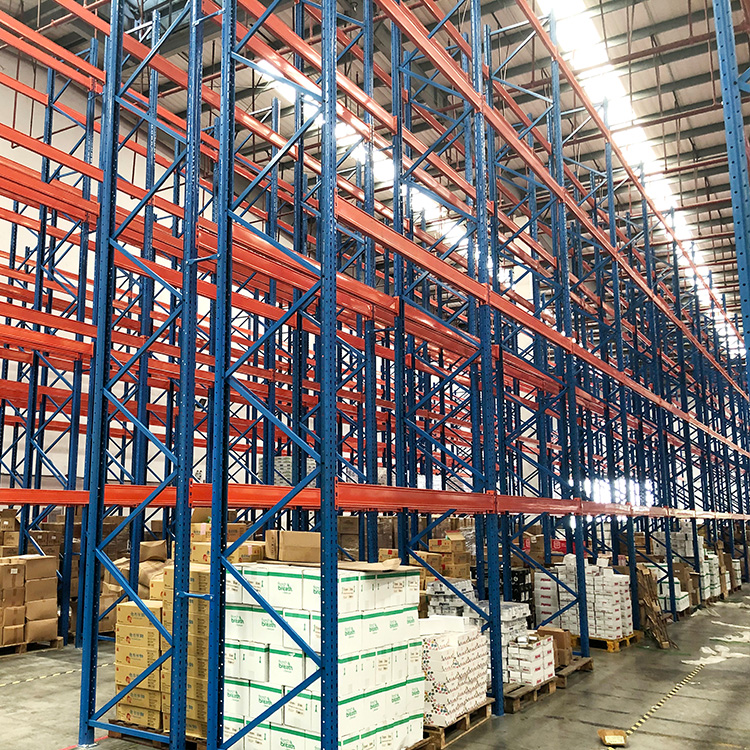 這是廣州貨架廠亞大重型貨架廠家廣州客戶定制的卡板貨架,現在省外到貨安裝已經接近尾聲。倉儲重型貨架安裝的輪廓已經呈現出一種完美的視覺,橘紅色的橫梁與藍色的立柱搭配起來更給人一種高大上的感覺。
