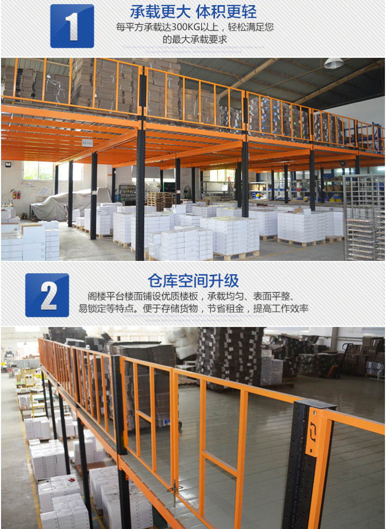 閣樓貨架的特點是全組裝式結構,隨意組合、安裝、拆卸方便靈活。可根據實際場地需要,靈活設計成二層或多層擱樓。適用于存放多品種,少批量貨物,充分利用空間。